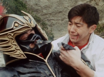 Without a doubt the standout side-villain in the show is of course Jin Matoba. Yutaka Hirose always makes a great villain. It was always a joy to see Jin show up in the show and his episodes always kept me at the edge of my seat. When you get right down to it, Jin is a relatively simple villain: He just wants to prove that he is the best fighter there is. Zydos even gives him magic hoping to sway him to the Gorma's side but even then, Jin is way out of his league and kicks Zydos to the curb. Despite using his martial arts to outright kill his opponents, he still has this sense of honor as a fighter. He also has one of the best villain deaths I've seen in Sentai. I won't say what it is here because I'd rather people find out for themselves. I will say that it is without a doubt Jin's best episode in the show. At first I was afraid Jin was going to be overblown due to all the hype around him but I'm so glad he is as awesome as my friends were telling me. All in all, its a great performance by Hirose and its one I won't soon forget. He gave the character a nice air of malice yet also got the honorable nature across. It makes for a really intimidating villain. I'll probably be adding him to my favorite villains list the next time I update it. While watching Jin and Gara, a thought crossed my mind: Jin played Kemp in Liveman and Gara played Mazenda, if Gou's actor had showed up as a Gorma, we could've had mini-Volt reunion.